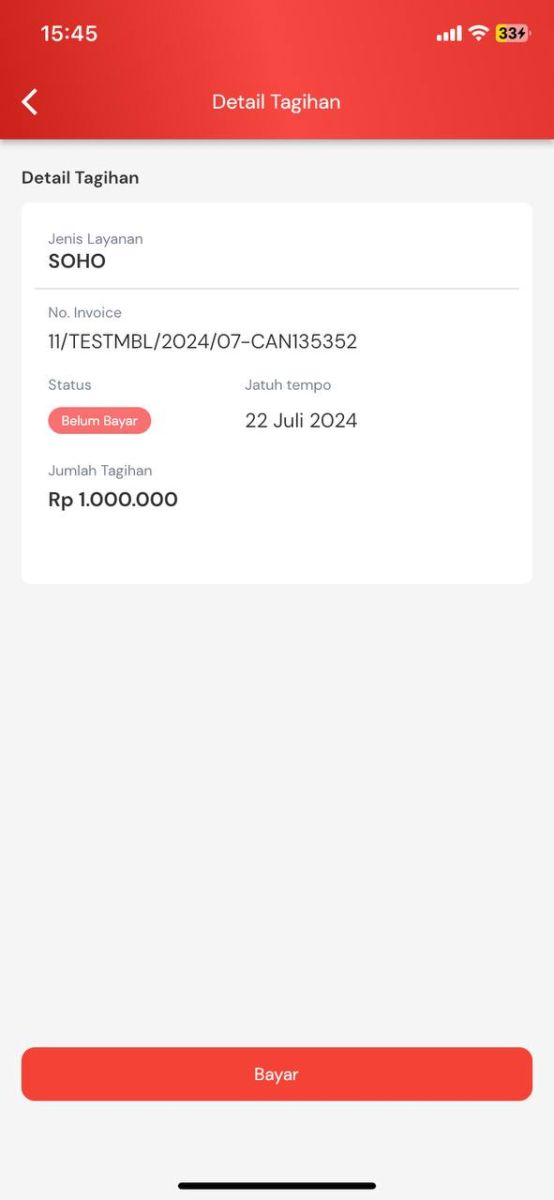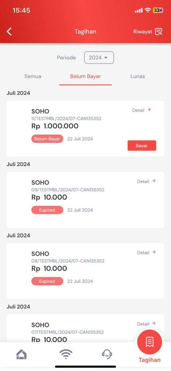 4. Cek Tagihan yang belum terbayar atau geser ke Menu “Belum Terbayar” lalu tap "Bayar"