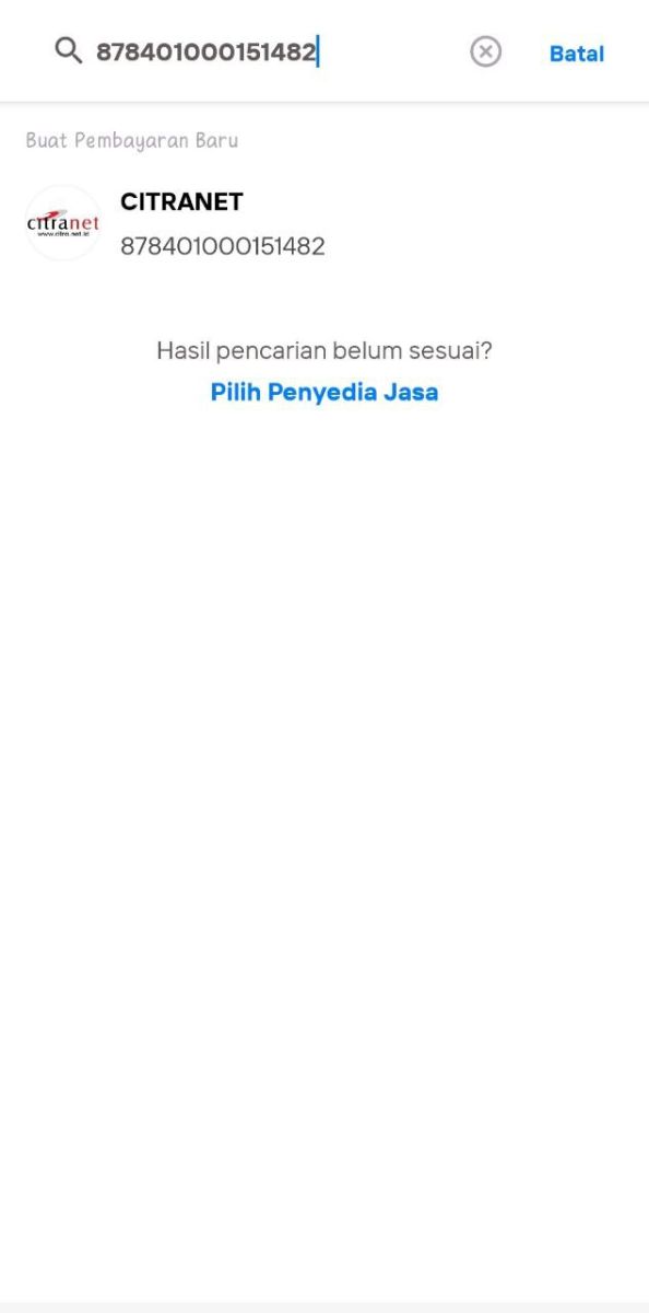 4. Pilih “PENYEDIA JASA : CITRANET (87840)”