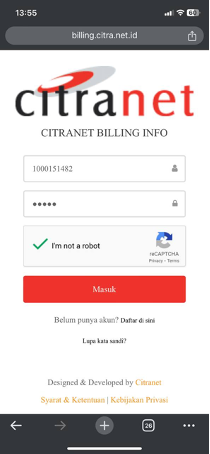 Pastikan Anda terdaftar sebagai pelanggan CITRANET yang dibuktikan dengan nomor ID Pelanggan yang Anda miliki